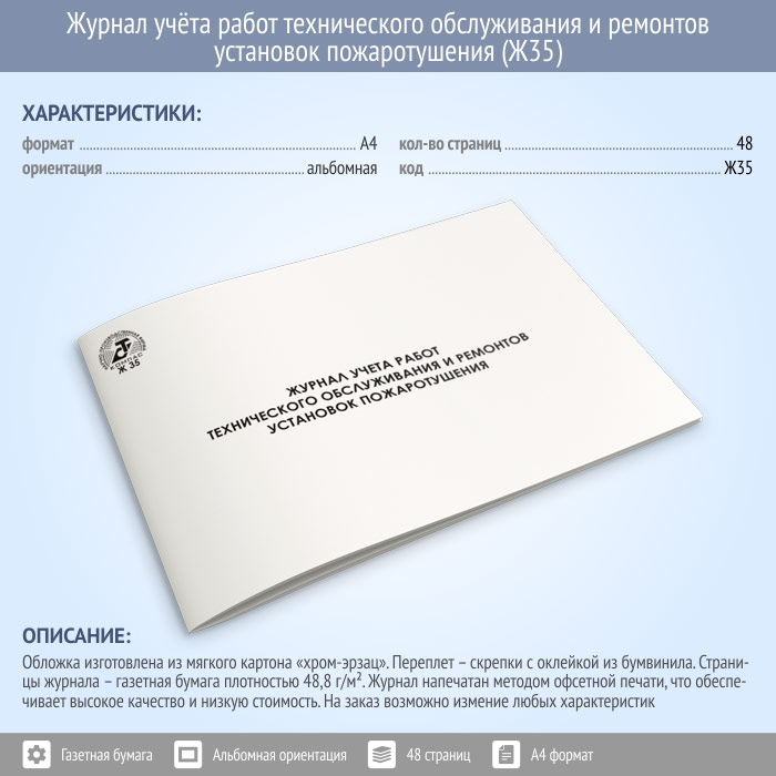 Журнал учета работ технического обслуживания и ремонтов установок пожаротушения (48 стр., Ж35) в Рошале купить