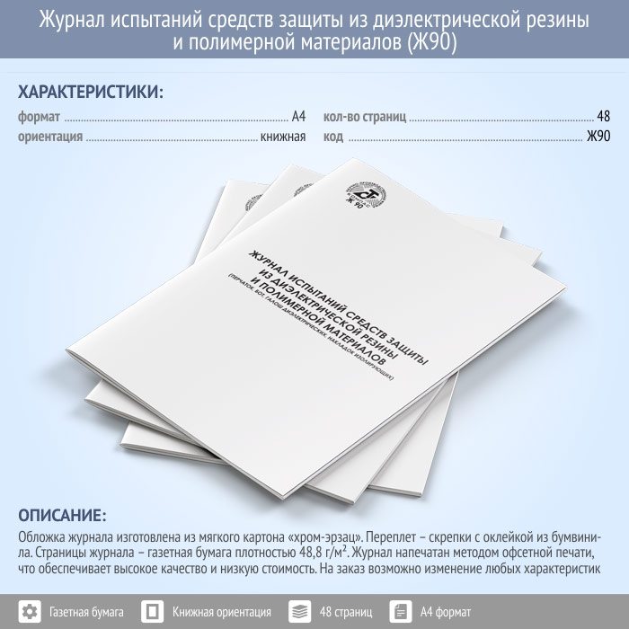 Журнал испытаний средств защиты из диэлектрической резины и полимерных материалов (48 стр., Ж90) в Рошале купить