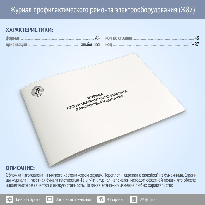 Журнал профилактического ремонта электрооборудования (48 стр., Ж87) в Рошале купить