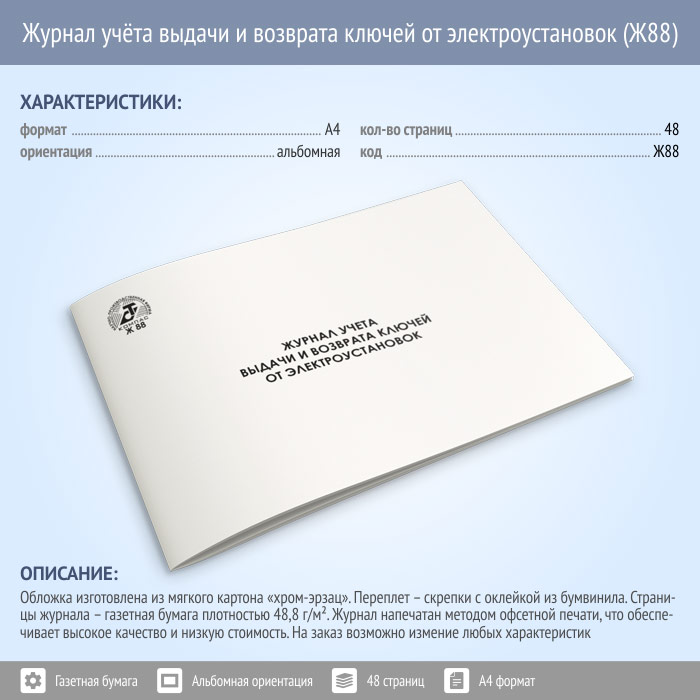 Журнал учета выдачи и возврата ключей от электроустановок (48 стр., Ж88) в Рошале купить