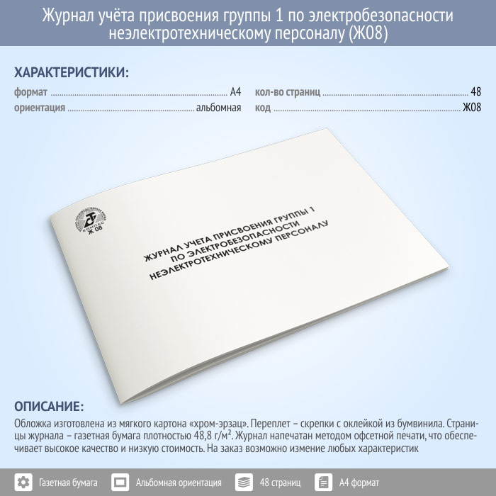 Журнал учета присвоения группы 1 по электробезопасности неэлектротехническому персоналу (48 стр., Ж08) в Рошале купить