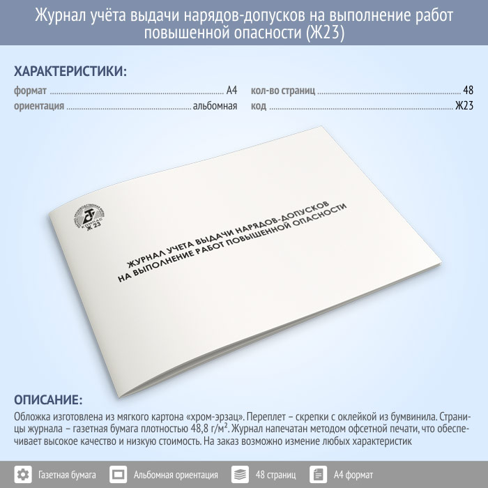 Журнал учета выдачи нарядов-допусков на выполнение работ повышенной опасности (48 стр., Ж23) в Рошале купить