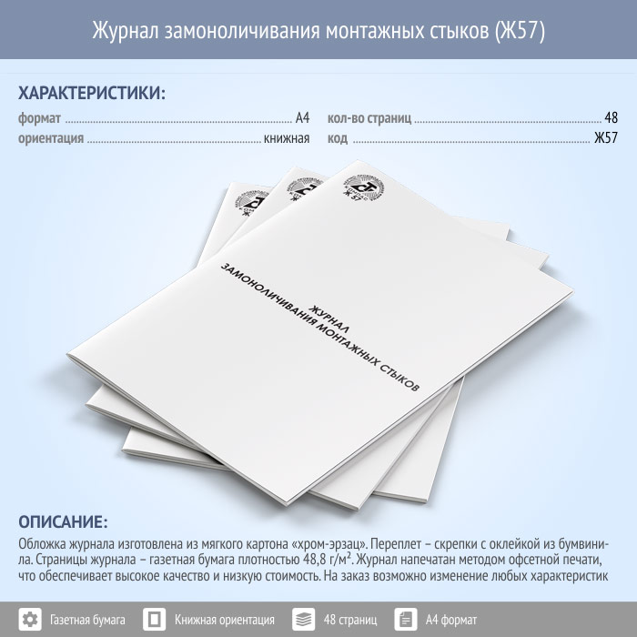 Журнал замоноличивания монтажных стыков (48 стр., Ж57) в Рошале купить