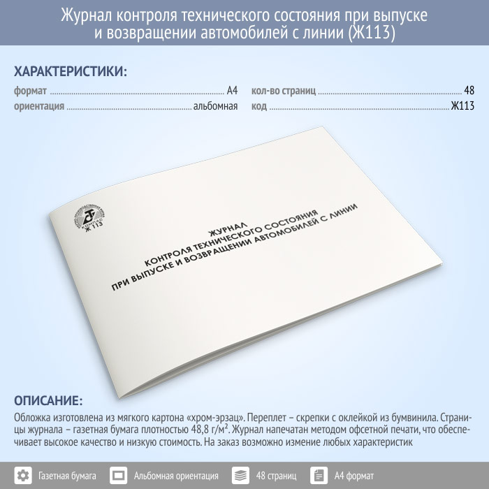 Журнал контроля технического состояния при выпуске и возвращении автомобилей с линии (48 стр., Ж113) в Рошале купить