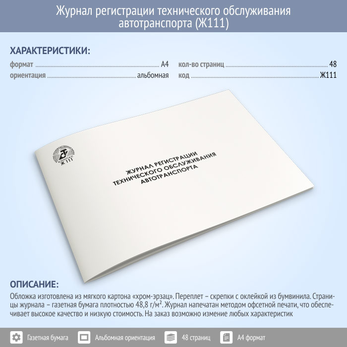 Журнал регистрации технического обслуживания автотранспорта (48 стр., Ж111) в Рошале купить