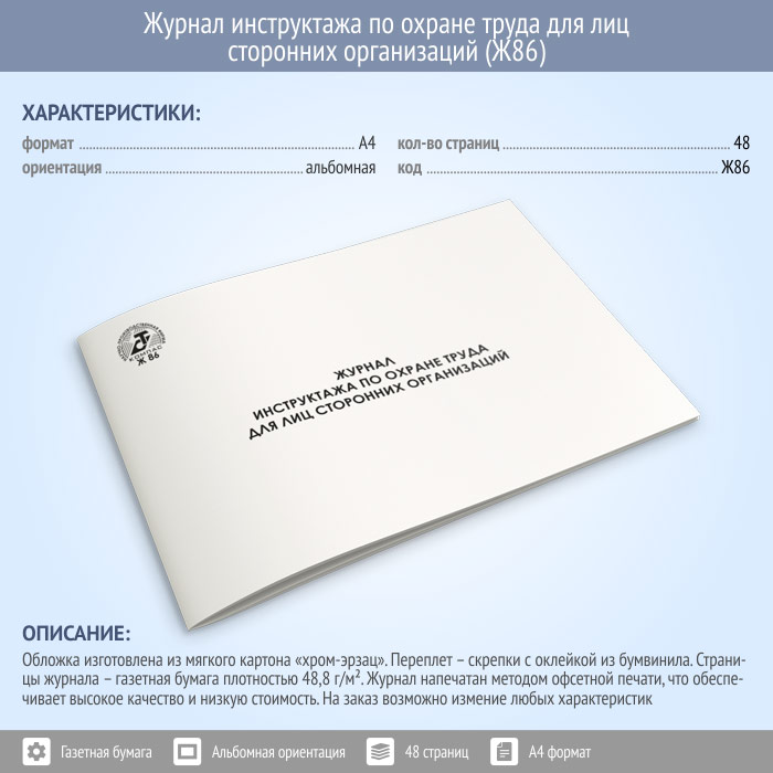 Журнал инструктажа по охране труда для лиц сторонних организаций (48 стр., Ж86) в Рошале купить
