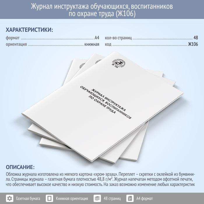 Журнал инструктажа обучающихся, воспитанников по охране труда (48 стр., Ж106) в Рошале купить