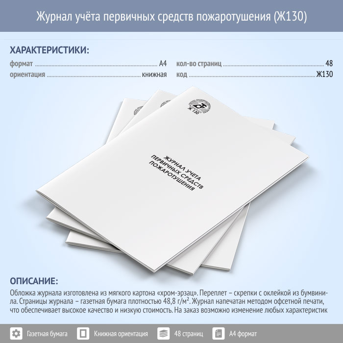 Журнал учета первичных средств пожаротушения (48 стр., Ж130) в Рошале купить
