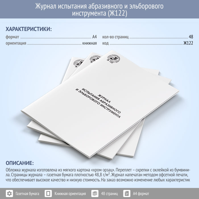 Журнал испытания абразивного и эльборового инструмента (48 стр., Ж122) в Рошале купить